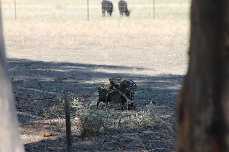 Officers continued to investigate the horrific scene throughout Tuesday morning, with the significantly damaged sedan situated in front of nearby homes and its engine in the adjacent paddock.