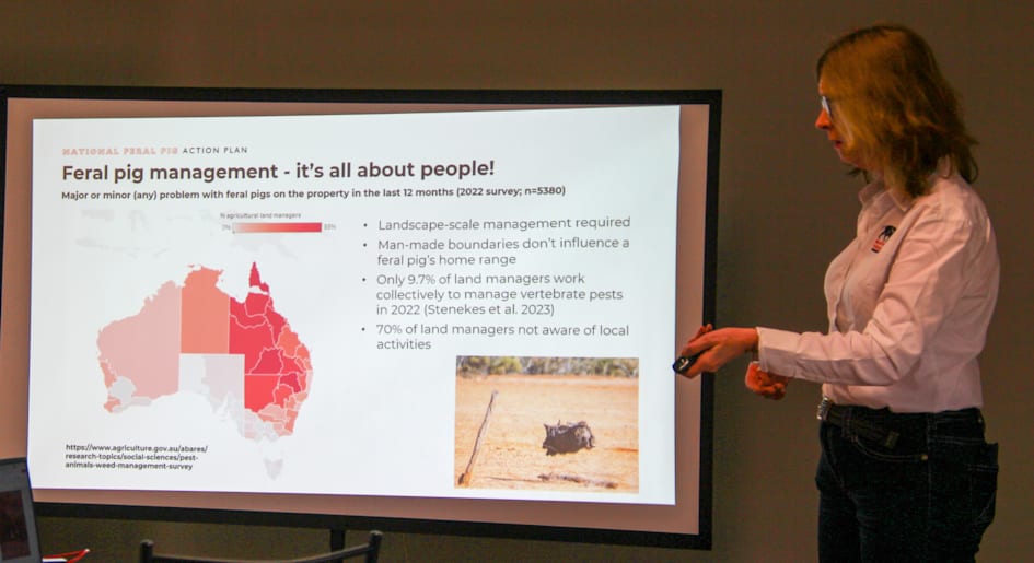 Following a welcome by DEECA’s Statewide Invasive Species spokesperson Mick Freeman, Dr Heather Channon, National Feral Pig Management coordinator, was introduced.