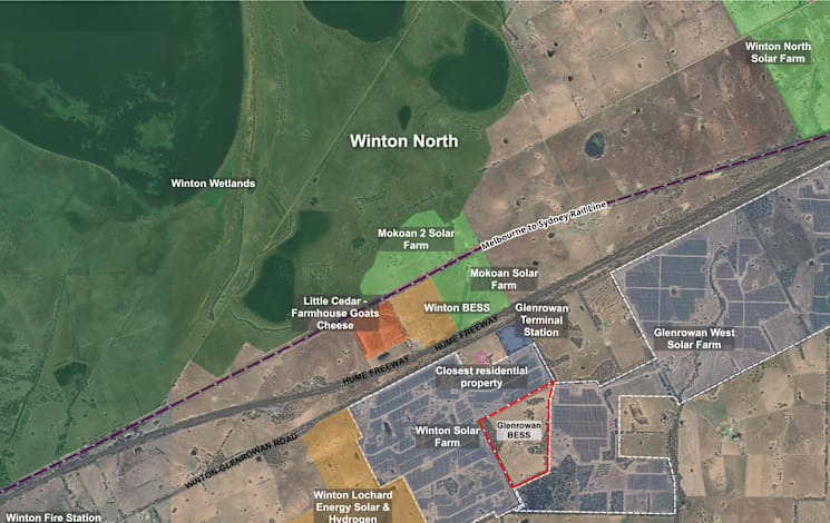 The BESS is proposed to occupy around 10 hectares about nine kilometres southwest of Glenrowan and five kilometres northeast of Winton and would include a control room, substation and associated infrastructure for the 220KV transmission network.